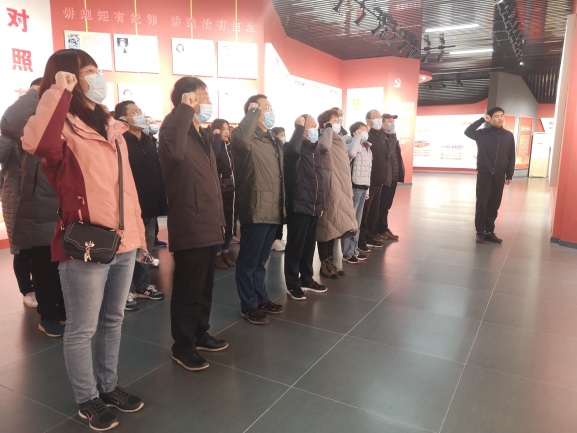 大家来到原山党性体验馆,观看了党性教育专题片,学习先模人物事迹。随后,教工党员们在讲解员的引领下,通过参观知识长廊、初心唤醒室、党性自检室,进行了党性知识学习。教工党员们在鲜红的党旗下列队肃立,重温入党誓词,大家深受鼓舞,内心被深深触动。紧接着,教工党员们依据党性检验报告,逐一进行对照自检,进行了严格的自我检查批评和自我评价,唤醒了入党初心,再铸艰苦奋斗精神。