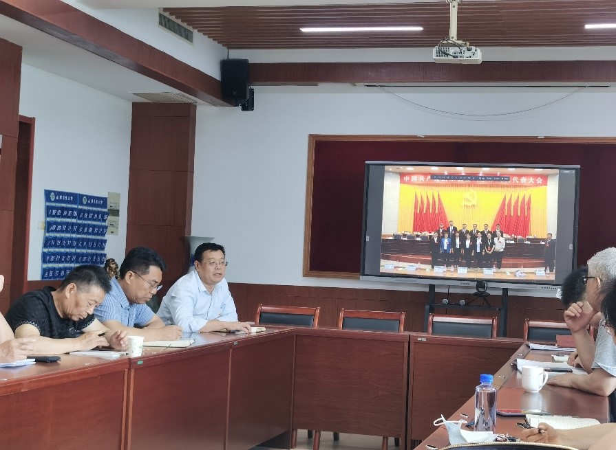 (图片:学院党委书记赵祥奎为院办中心支部党员、民主党派人士和群众解读学校第八次党代会精神)